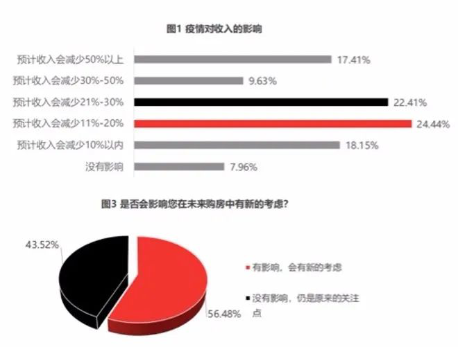 疫情对绝大部分行业都造成了影响,自然也会对居民收入有显著影响,一项调查显示,绝大多数被访者表示收入将下降10%-30%;超六成被访者因疫情而推迟购房计划。