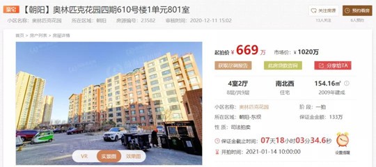 6.5折!朝阳千万豪宅669万拍卖!