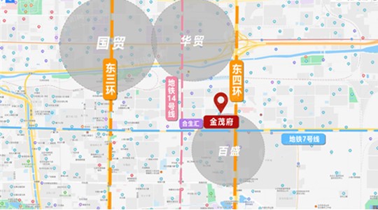 继2007年房地产市场调控以来,北京出现了全国成交价最高的“地王”,昔日地王即为今日金茂府北区的府邸。金茂府北区位于百子湾南二路,毗邻CBD核心,坐拥国贸、华贸、百盛三大商圈。南侧为两广路和珠江帝景,北侧为后现代城,西侧是别墅项目复地PEKING HOUSE。11万平米园林,立体交通网环绕,7号14号线双地铁,出行便利。