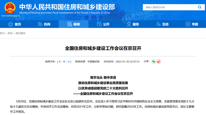 同一天深夜,住建部官网发布重磅新闻,布局2022年房地产市场,稳字当头,稳中求进,推动住房和城乡建设事业高质量发展。会议强调,要稳增长,充分释放居民住房需求、新型城市基础设施建设置业需求潜力,同步推动扩内需、转方式、调结构,促进经济实现质的稳步提升和量的合理增长。