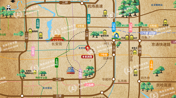 本家润园一期位于东二环内黄金区位,北距长安街1400米,南门即为广渠门内大街,东侧为东二环主路。距离北京火车站约1公里,南北分别为地铁2号线和7号线,南紧邻地铁7号线广渠门内站,通勤国贸仅需3站。