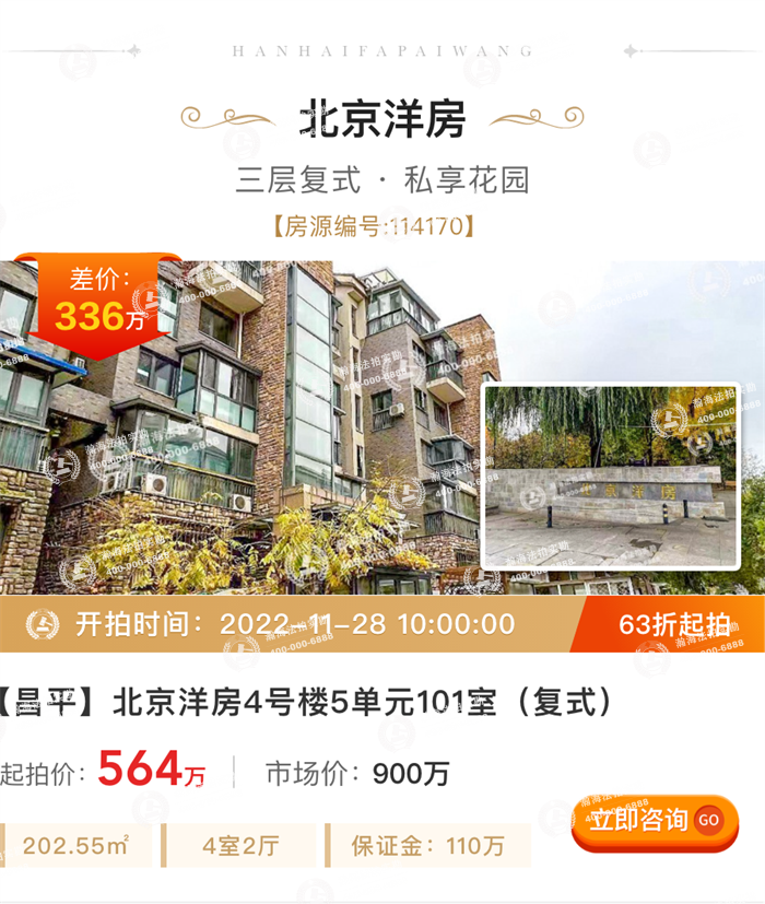 800W预算轻奢指南!潘家园四居6.7折上拍,北七家复式洋房单价2字头~