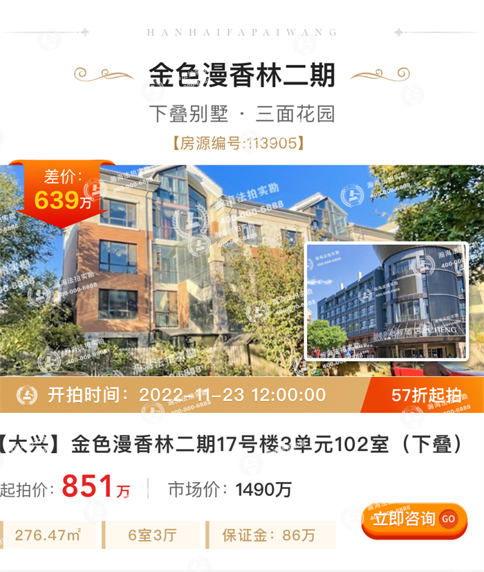 ③超低折扣:如此稀缺优质标的,仅5.5折挂牌,市场价超千万,563万起拍,差价452万,建面236.37平米,特别适合三代同堂、多孩家庭。