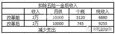 而如果家庭月收入在2万左右,月供在1万左右,基本也就是个税可以降低2000多元,月供降低大约在23%左右。